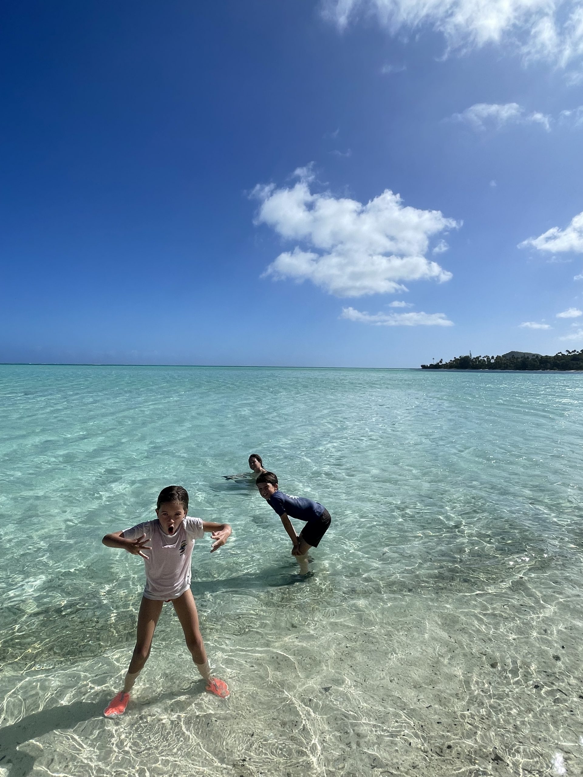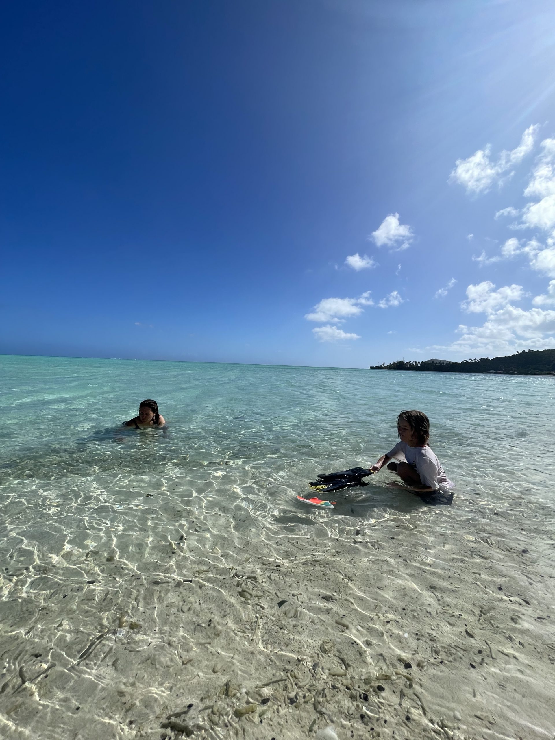 Après-midi chill sur la fameuse plage de Matira. L’eau est juste incroyable et nous passerons l’après-midi à nager, jouer, bronzer avec une raie dans les pattes…