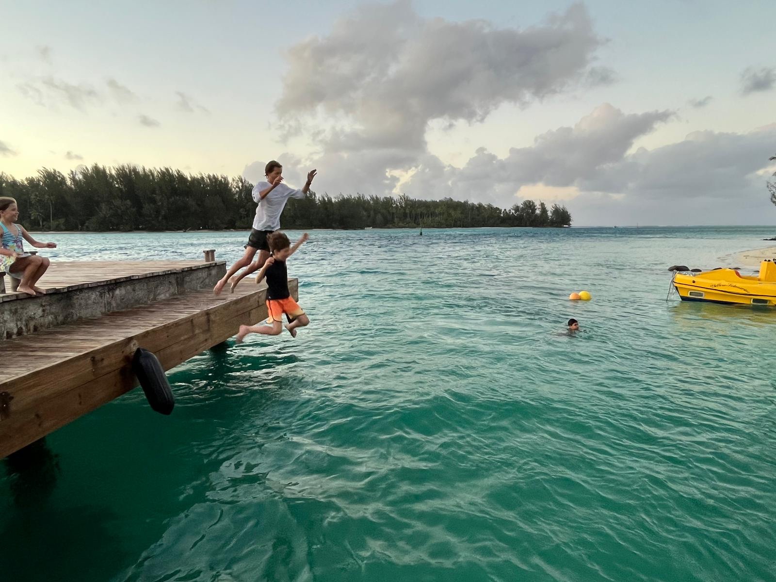 Retour a la pension, avec petit stop au ponton du Captain Taina pour qq sauts.