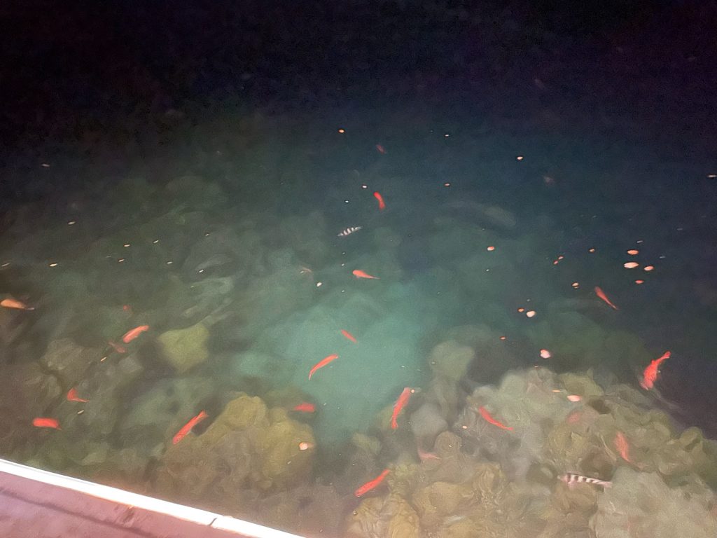 Après-midi à la cool, petite balade en kayak pour aller visiter le motu, petit snorkeling évidemment puis départ pour le resto chic, le Fish’n blue. Le resto est vraiment beau, bon, chic et l’accueil aux petits soins…la clientèle est assez aisée et descend de ses bateaux donc nous laissons un peu de notre budget nourriture mais ca en valait le coup…on repartira même avec un petit doggy bag et du pain pour les poissons…