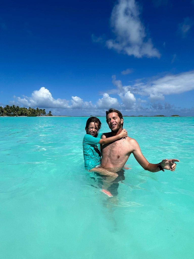 Nous finirons par un petit snorkeling dans l’aquarium, puis le capitaine nous emmènera au milieu de la passe pour voir les dauphins 🐬… au final, pas de dauphins ce soir, juste un peu plus de mal de mer pour Milouze 😁😁😁