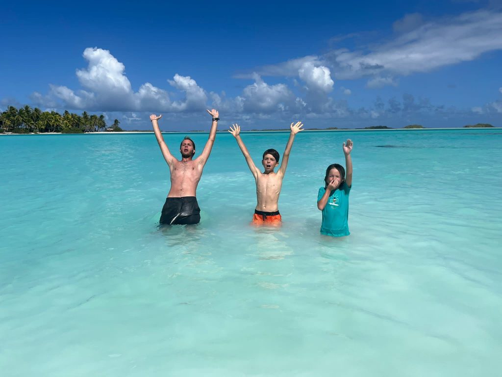 Comme prévu, le voyage est long et douloureux 😰. Le lagon est moins agité que la veille mais il faut savoir que le lagon de Rangiroa est immense, il fait la taille de l’ile de Tahiti!!! Et donc au milieu du lagon, on ne voit pas la terre et la mer est bien agitée…